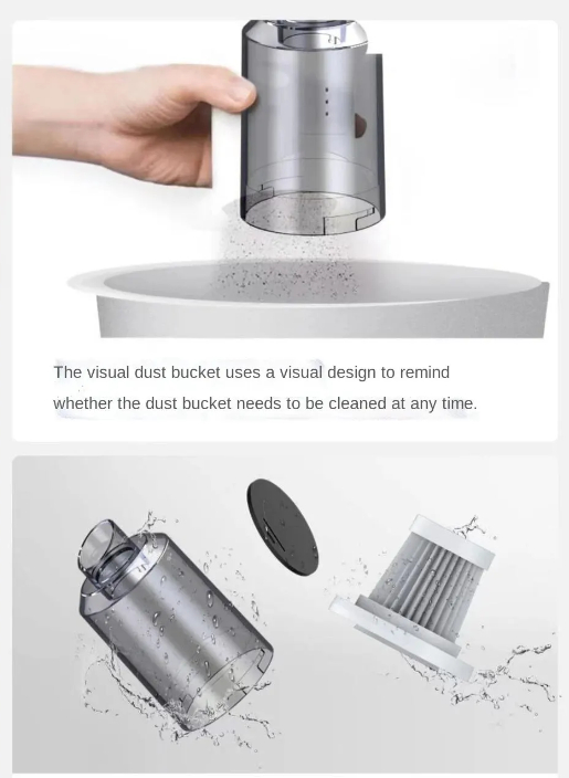 • Portátil y de mano :El tamaño compacto de la aspiradora hace que sea fácil de transportar y usar en cualquier habitación.