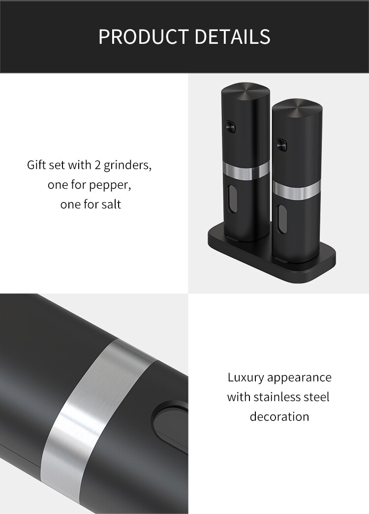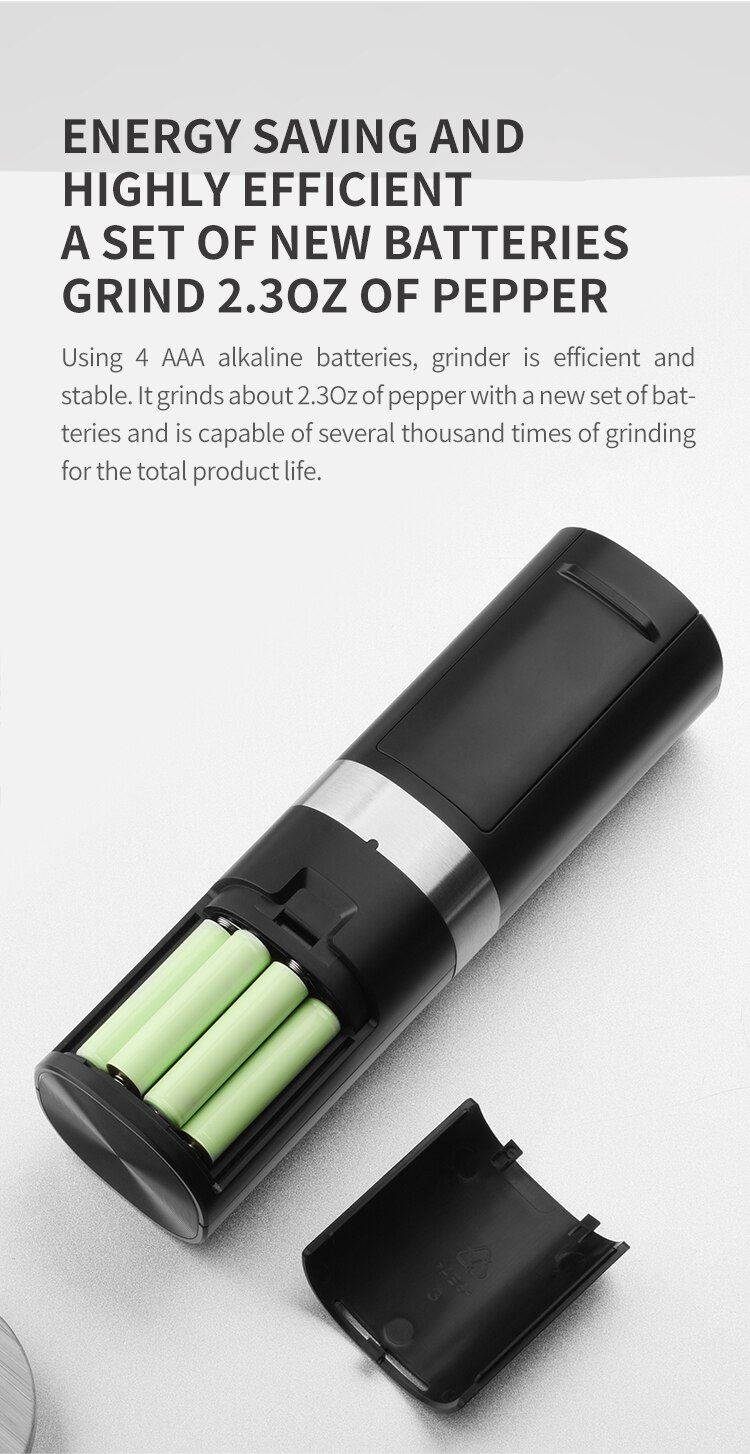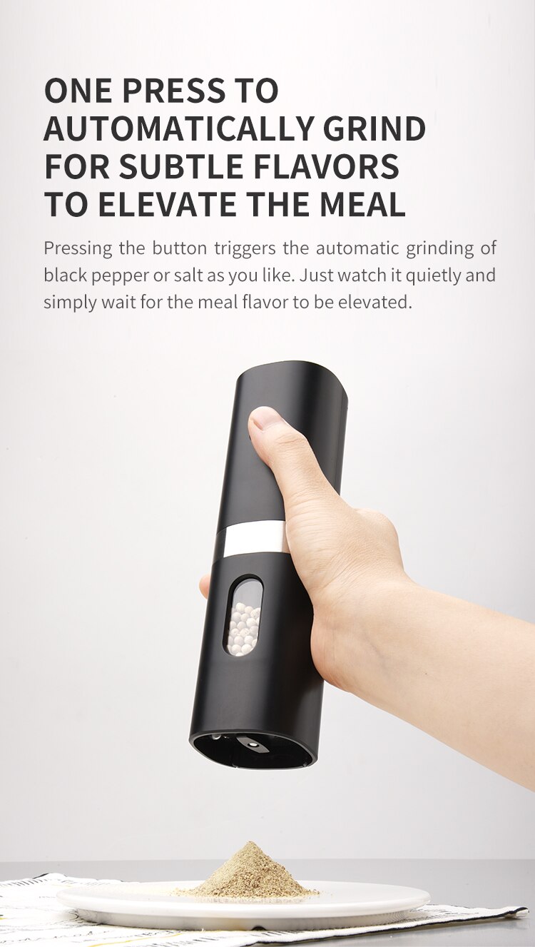【 Versatilidad】-Este molinillo de pimienta eléctrico puede moler una variedad de especias como sal del Himalaya, sal marina, pimienta blanca y negra, sésamo negro y grano de pimienta de Sichuan.