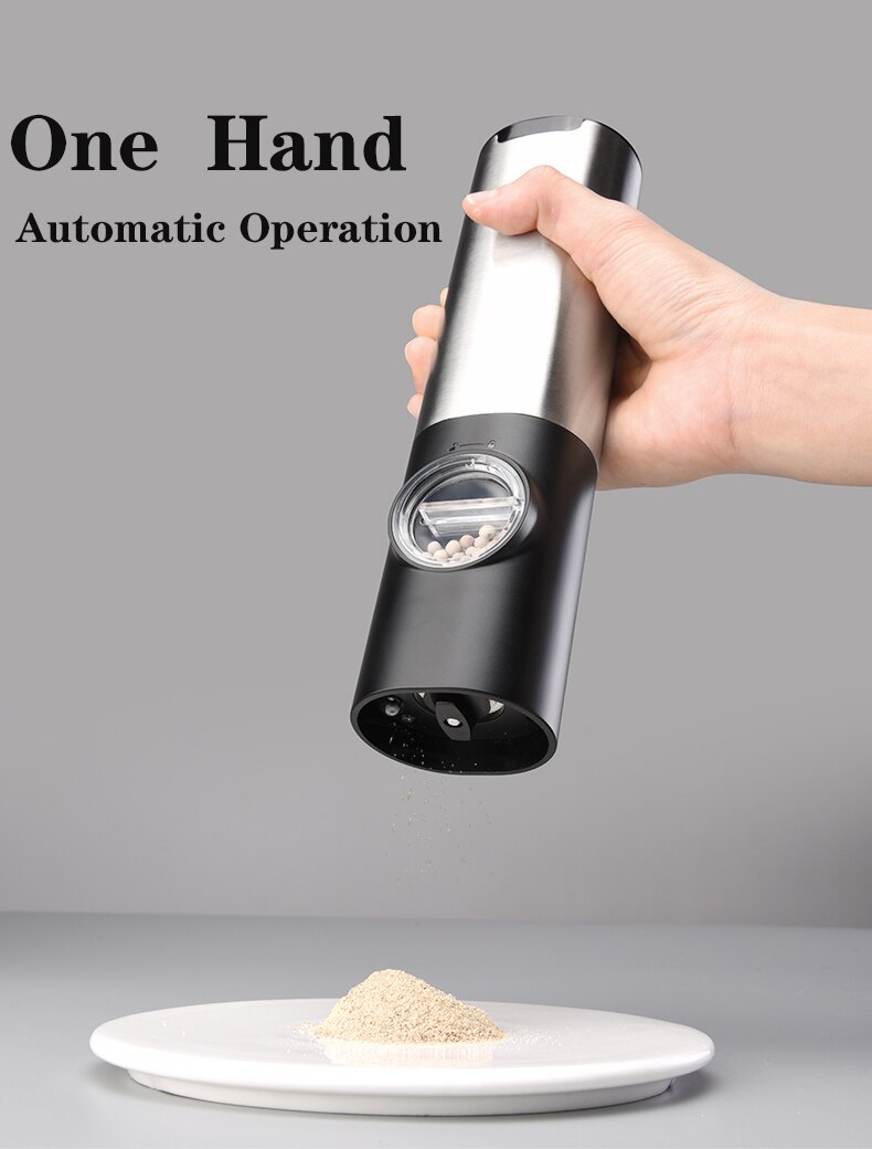 [ DISEÑO DE BATERÍA RECARGABLE, SIN NECESIDAD DE SUSTITUIR BATERÍAS ]-A diferencia de otros molinillos de pimienta que funcionan con pilas, este molinillo de pimienta eléctrico tiene incorporada una batería de litio recargable, para que no tenga que gastar dinero extra en baterías ni preocuparse por agregarlas a los vertederos. Simplemente dé la vuelta al molinillo y tendrá especias recién molidas, lo que también es ideal para las personas que sufren de artritis o dolor crónico en las manos.