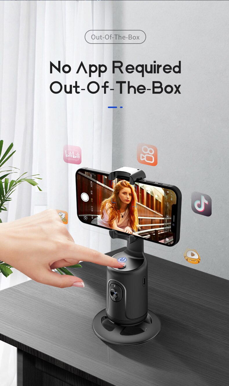 Mini palo de selfie operado por Inteligencia artificial. Seguimiento automático de rostro, disparo automático, rotación de 360 grados. Gimbal