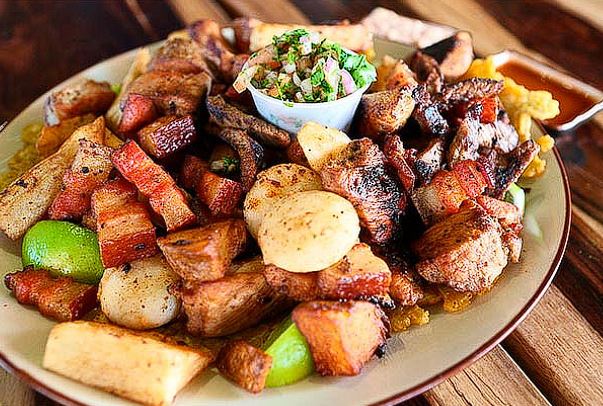 Res, cerdo, pollo, chorizo y costilla ahumada; Acompañada con arepa, guacamole, papa a la francesa o al vapor.